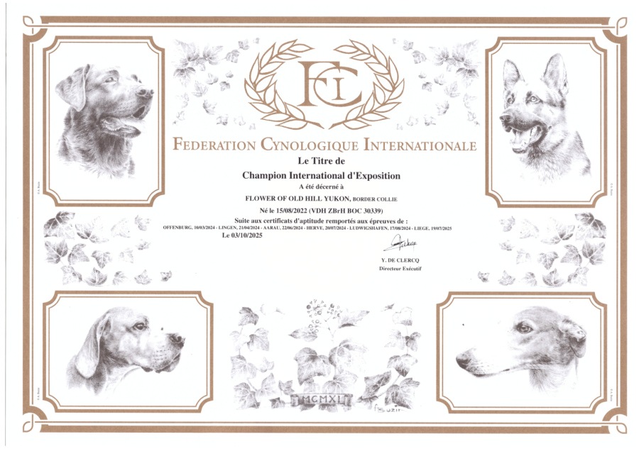 Internationalen Champions (C.I.E.) ("Certificate International Exposition"; hierfür benötigt ein Hund mind. 4