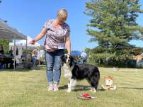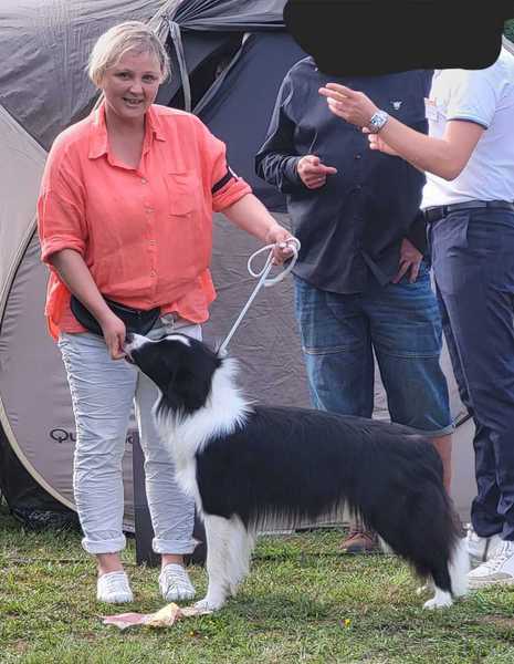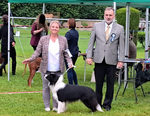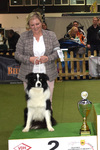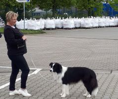 Wir mussten damit bis zum Ende der Ausstellung warten um im FCI-Gruppenwettbewerb zu starten. Ich rechnete mir keine Chancen aus: Border Collies dürfen meistens eine Runde laufen und dann wieder gehen.... aber auch hier konnte Sonic den Gruppenrichter überzeugen: Sonic wurde mit dem 2. Platz der FCI-Gruppe I